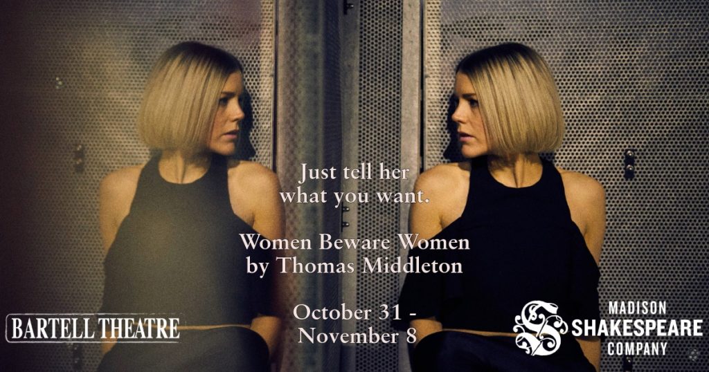 Announcing the cast of Women Beware Women by Thomas Middleton, a classic dark comedy opening Halloween night and performing through November 8 at Madison’s Bartell Theatre: